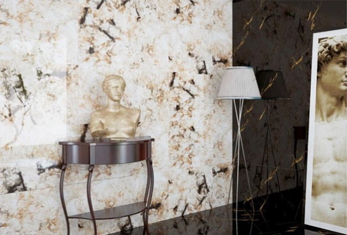 расцветку под мрамор, под камень, что позволяет использовать их