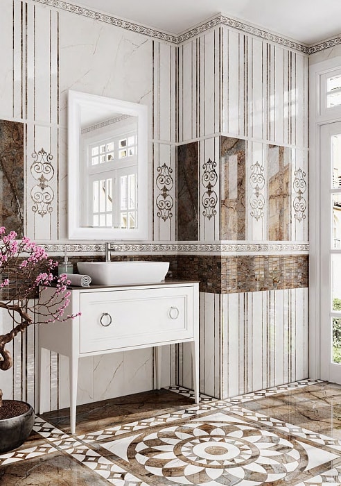 расцветку под мрамор, орнамент, под мозаику, что позволяет использовать их
