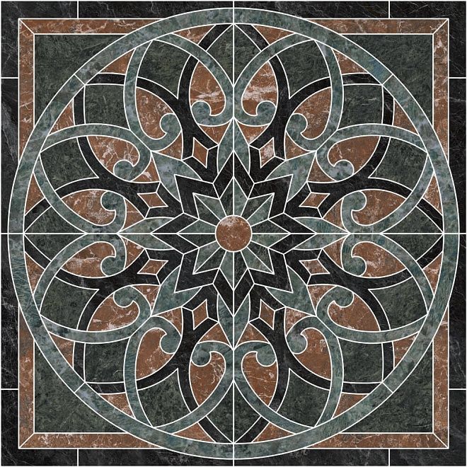 Керамогранит Риальто наборный лаппатированный 120x120 из коллекции Риальто производителя Керама Марацци купить можно в шоу-руме ТД Согласие по адресу Нахимовский проспект д.32 или позвонив по телефонам 8 (800) 333-46-24 Керамогранит Риальто наборный лаппатированный 120x120 имеет размер 120x120, зеленый цвет и рисунок орнамент что позволяет его применять для гостиной, для офиса, для прихожей.